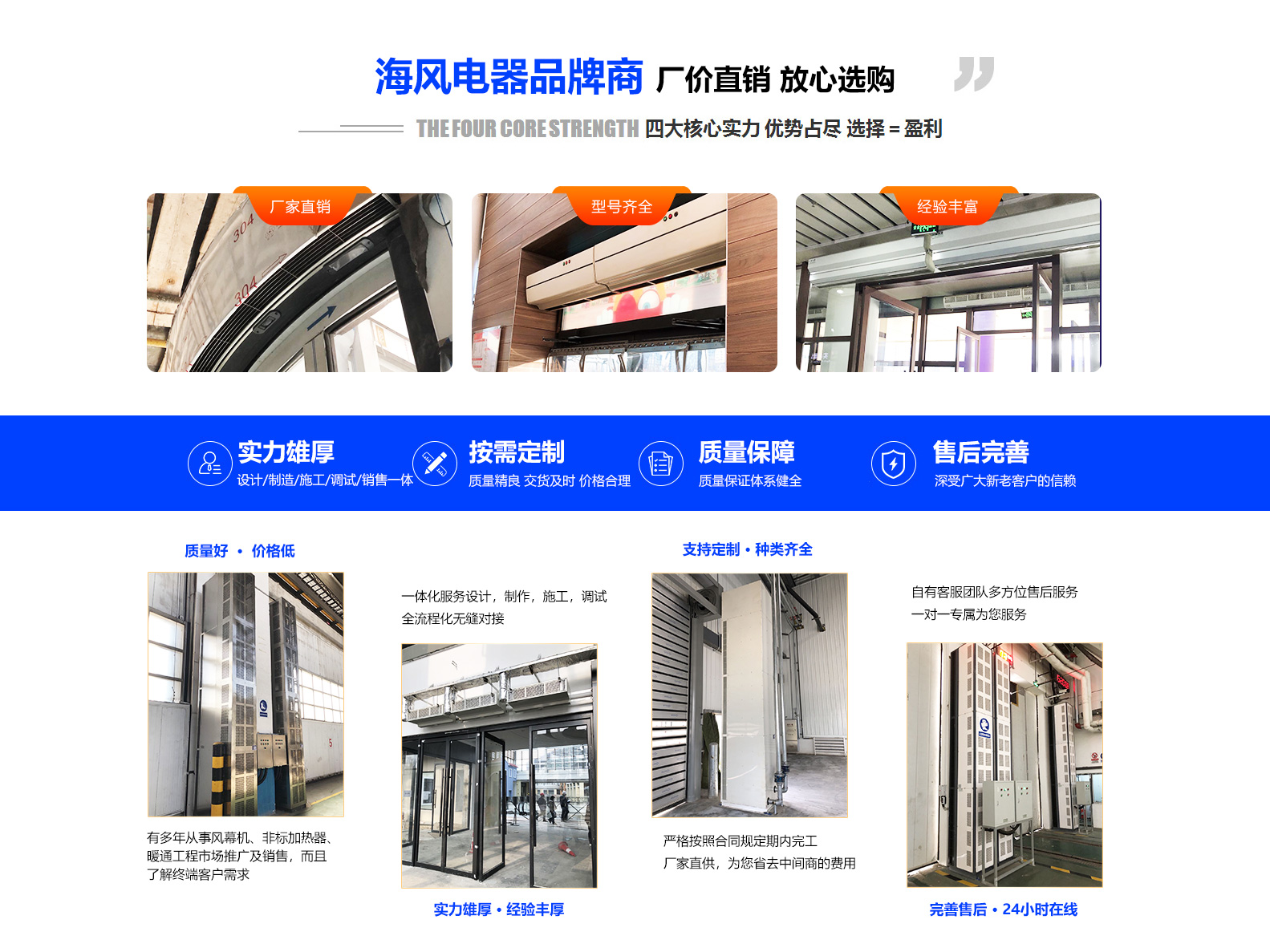 多年從事空調(diào)、風(fēng)幕機(jī)、非標(biāo)加熱器產(chǎn)品銷售,具有良好商業(yè)信譽(yù)和服務(wù)能力的經(jīng)銷商網(wǎng)絡(luò)做為企業(yè)發(fā)展的源泉。“客戶的需求就是海風(fēng)人的追求”做為海風(fēng)人的服務(wù)理念 ...